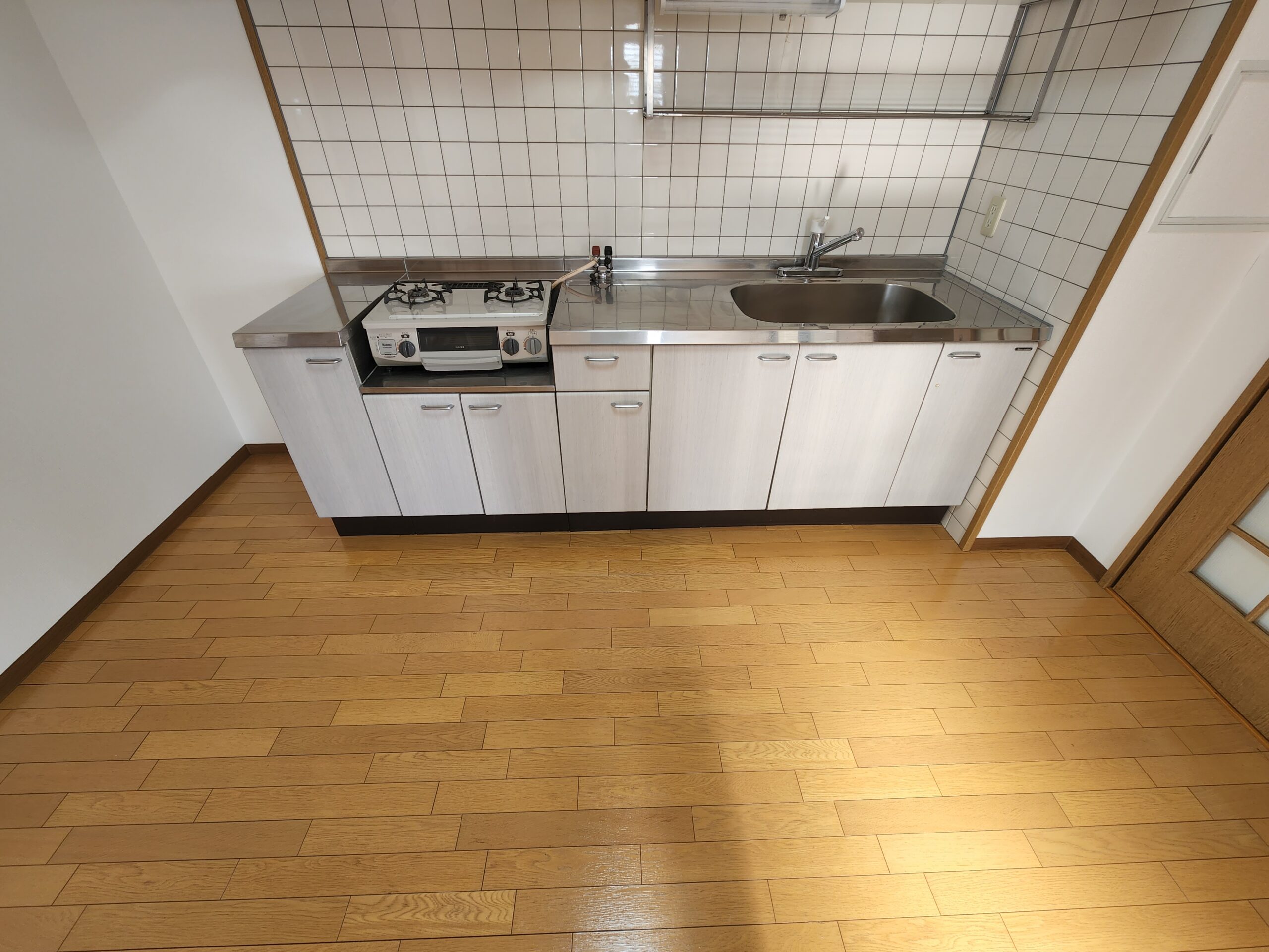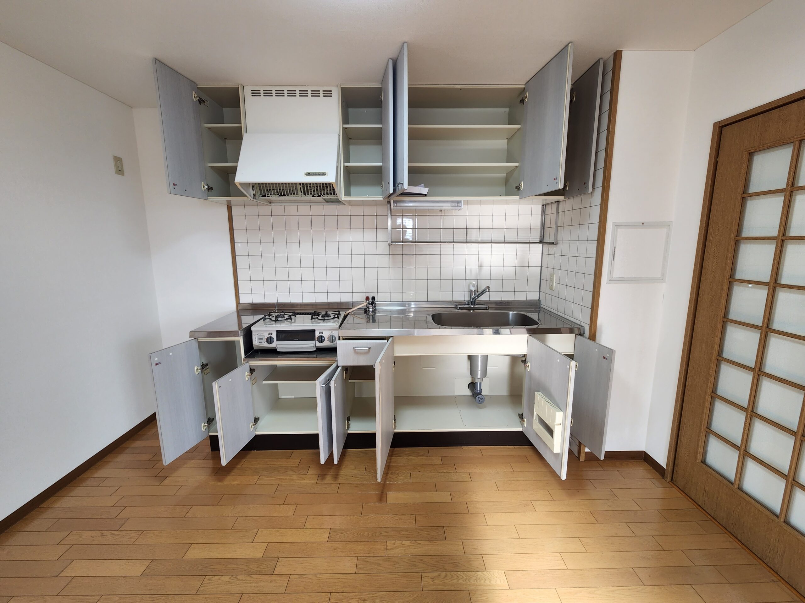 キッチンは至って普通。収納は上下でいろいろ入ります。