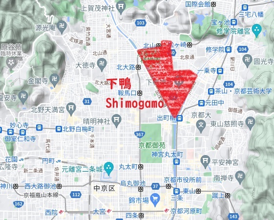 住所に下鴨とつくエリアはこんな感じ。